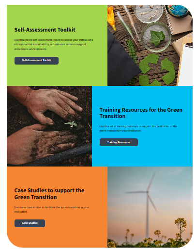 • HE Green Assessment: A self-assessment tool providing actionable insights for universities to measure their sustainability performance.